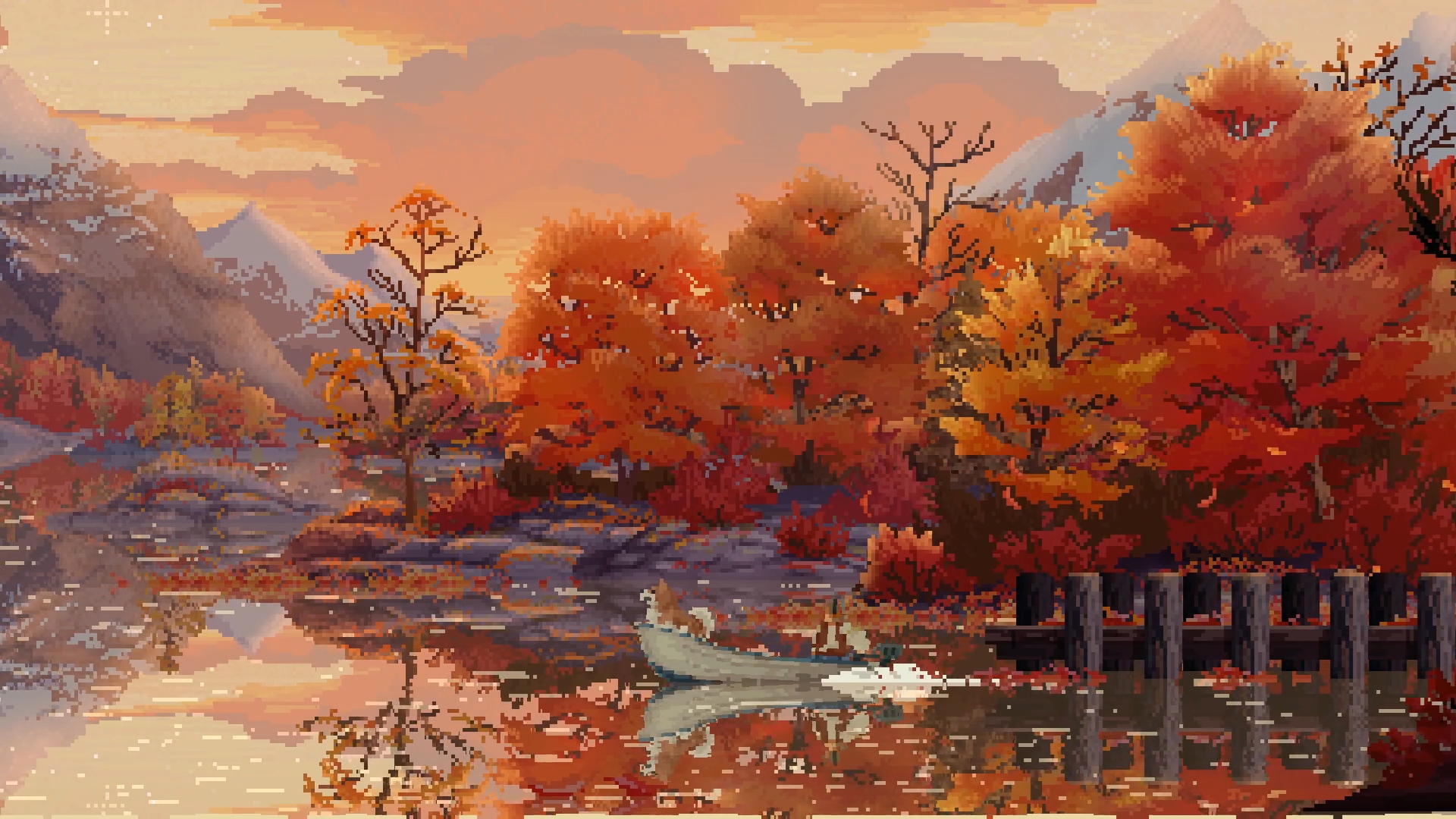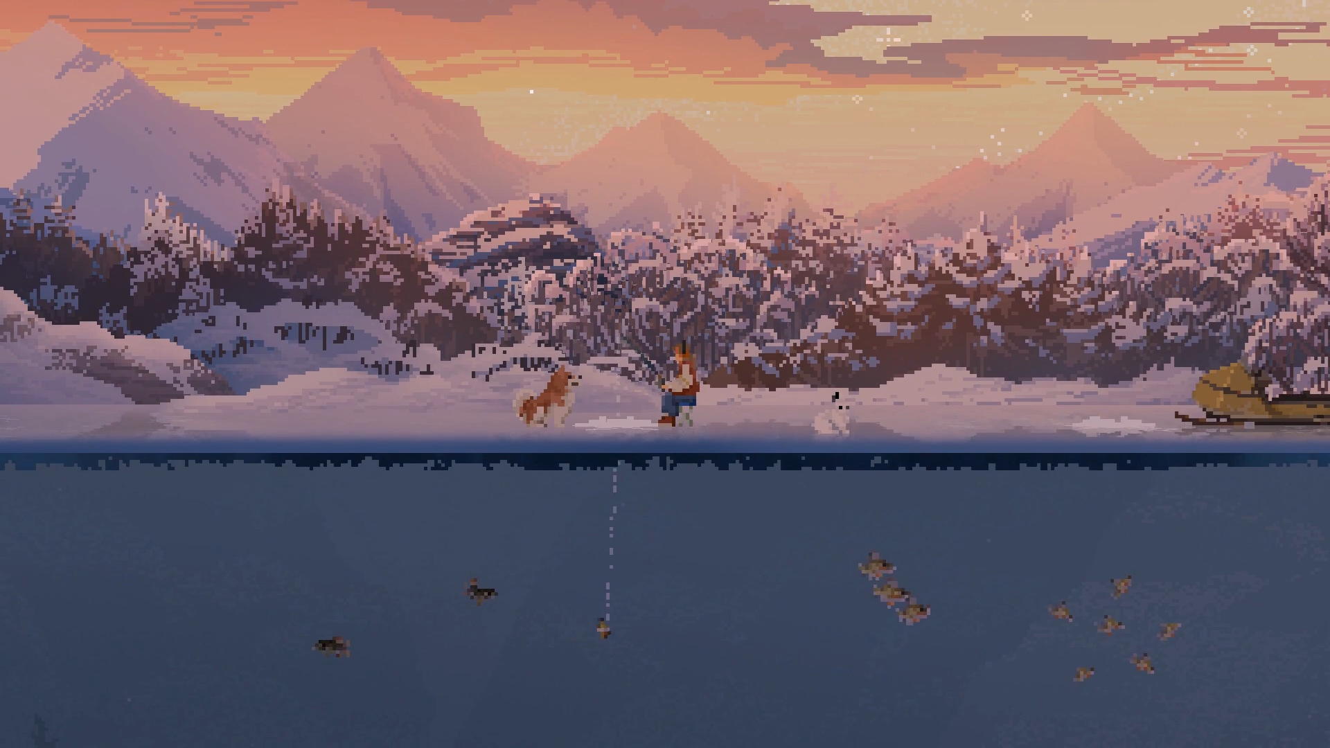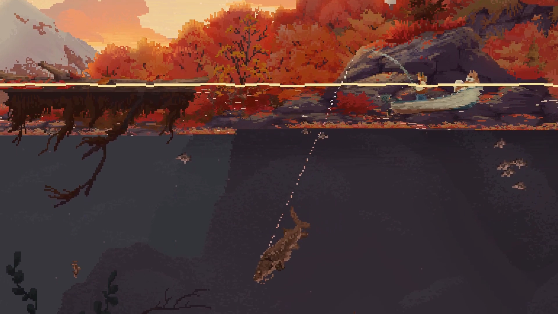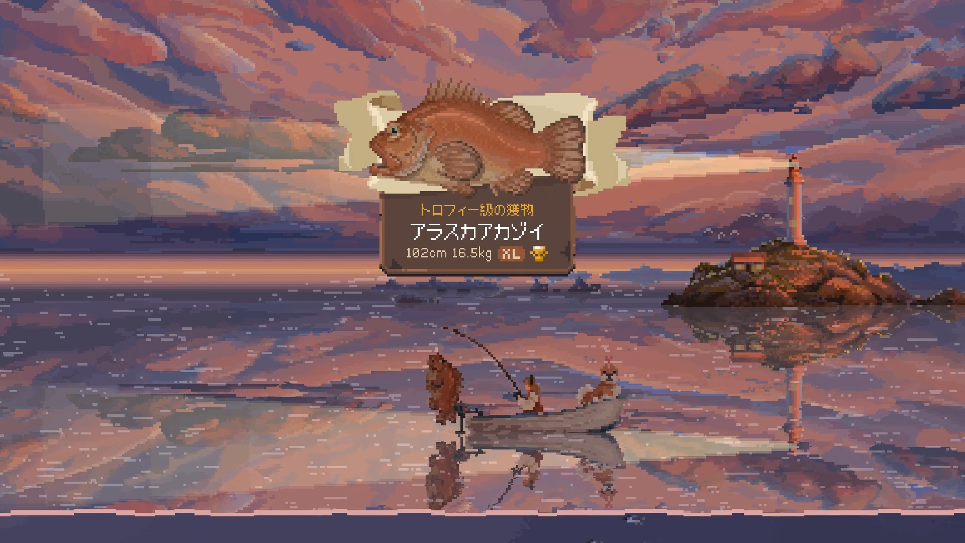 本作の最大の特徴はやはりビジュアル。ドットで描かれる大自然の美しさは思わず手を止めて見とれてしまうほどです。ゲームを進めることで川だけでなく湖や海など、さまざまな釣り場が解放されていくのですが、どこへ行っても絶景。マジで絶景。すごい。もう釣りとかやらずにぼんやり眺めていてもいいくらいです。まぁ釣るんですけど。